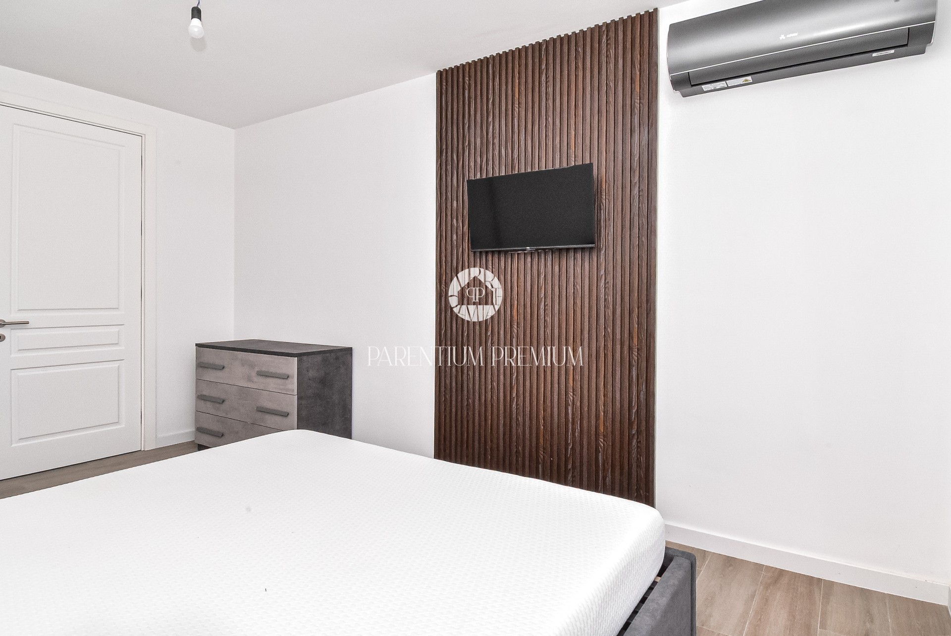 Equipped with electric underfloor heating and air conditioning in all rooms, the apartment stands out for its custom-made Italian furniture, high-quality tiles, and windows with electric shutters.