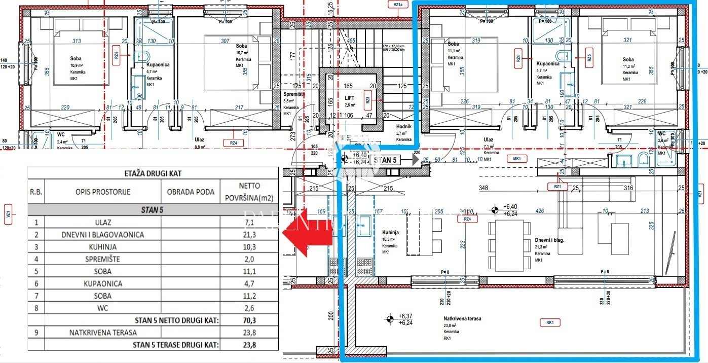 For sale is an apartment with a net living area of 70.3 m² plus a covered terrace of 23.8 m² net, located on the 2nd floor of a high-quality residential building with an elevator, currently under construction.