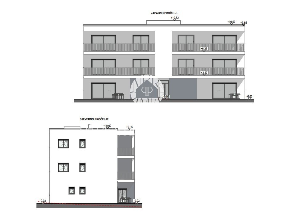 The modern building with a total of six residential units is situated in a quiet location near the town of Poreč and the sea.