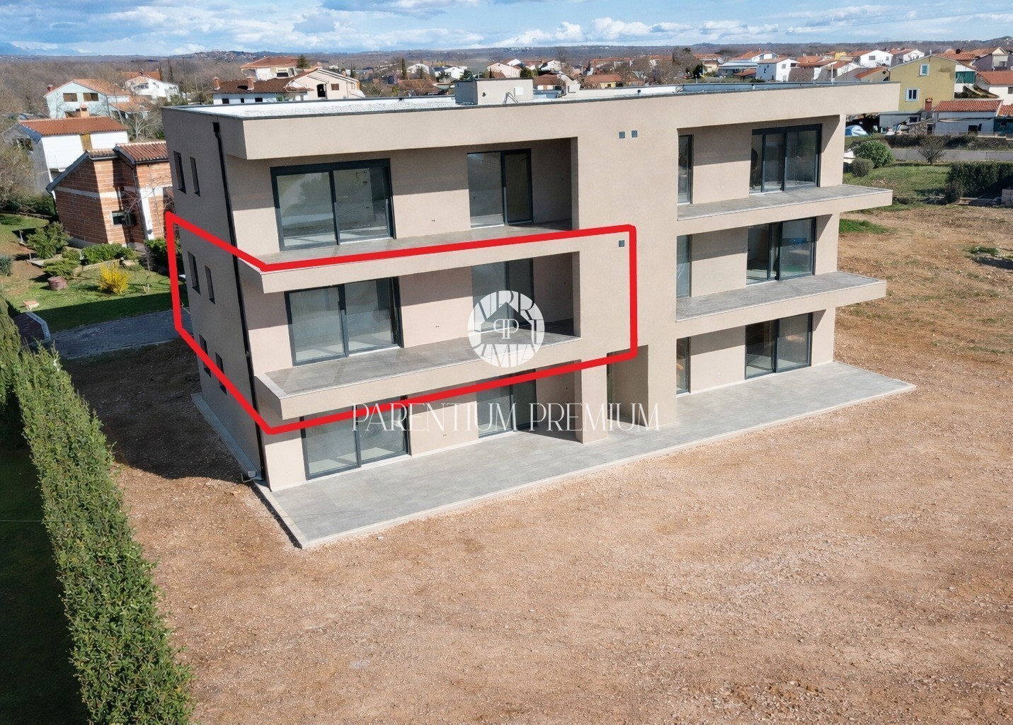 The modern building with a total of six residential units is situated in a quiet location near the town of Poreč and the sea.