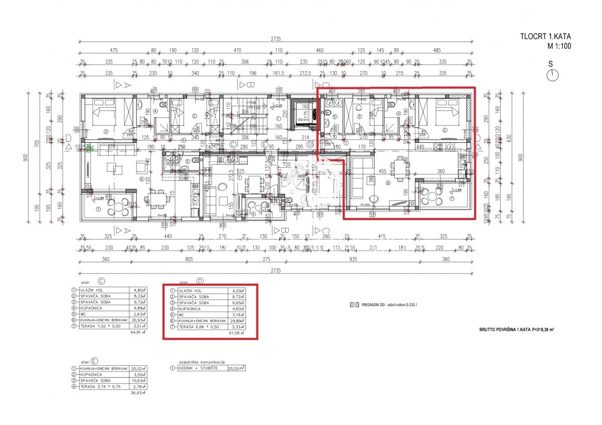 For sale is an apartment located on the 1st floor, with a net area of 61.58 m², consisting of an entrance hall, guest toilet, two bedrooms, a bathroom, and an open-space living room with kitchen and dining area, with access to a covered terrace ideal for relaxation and enjoyment.