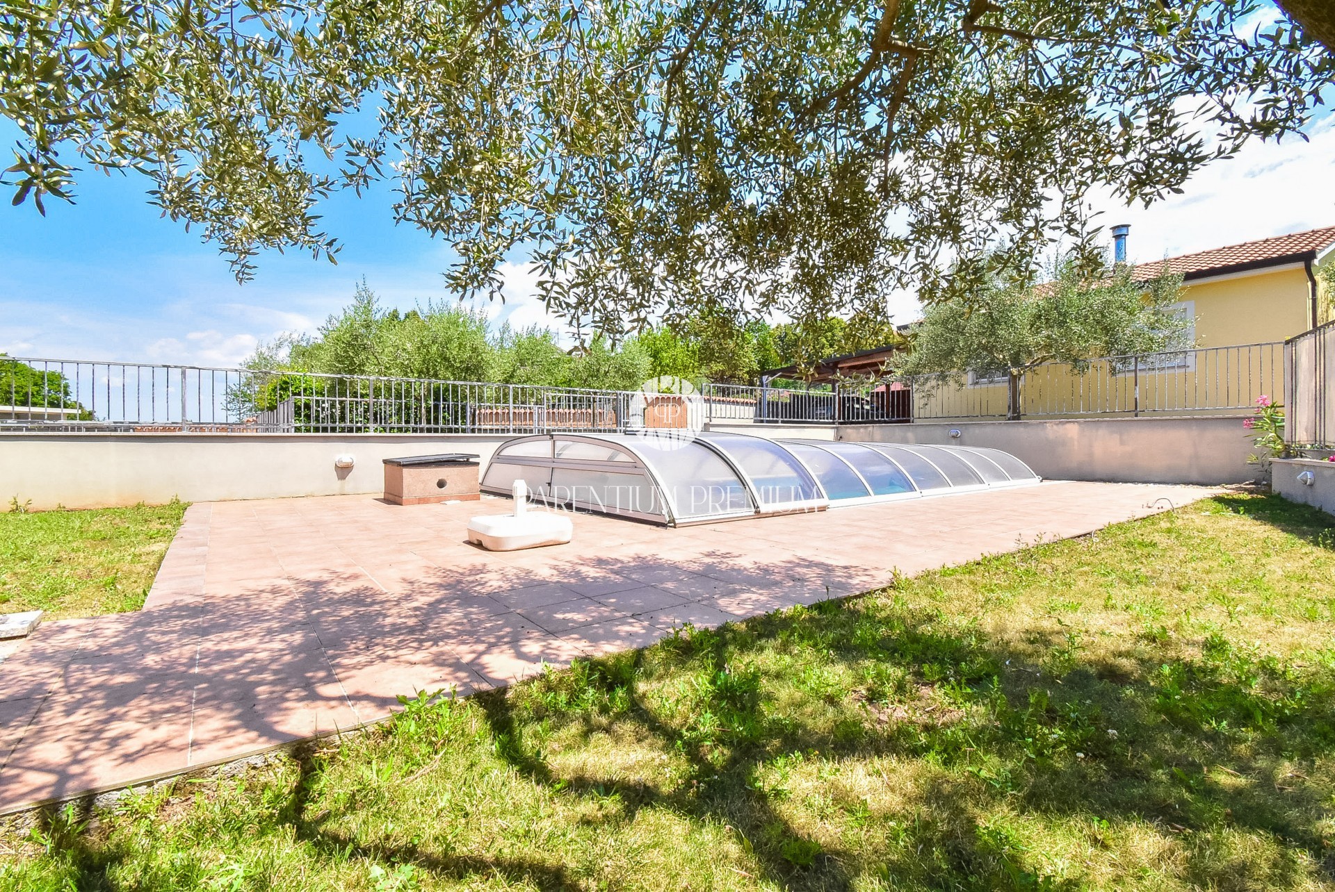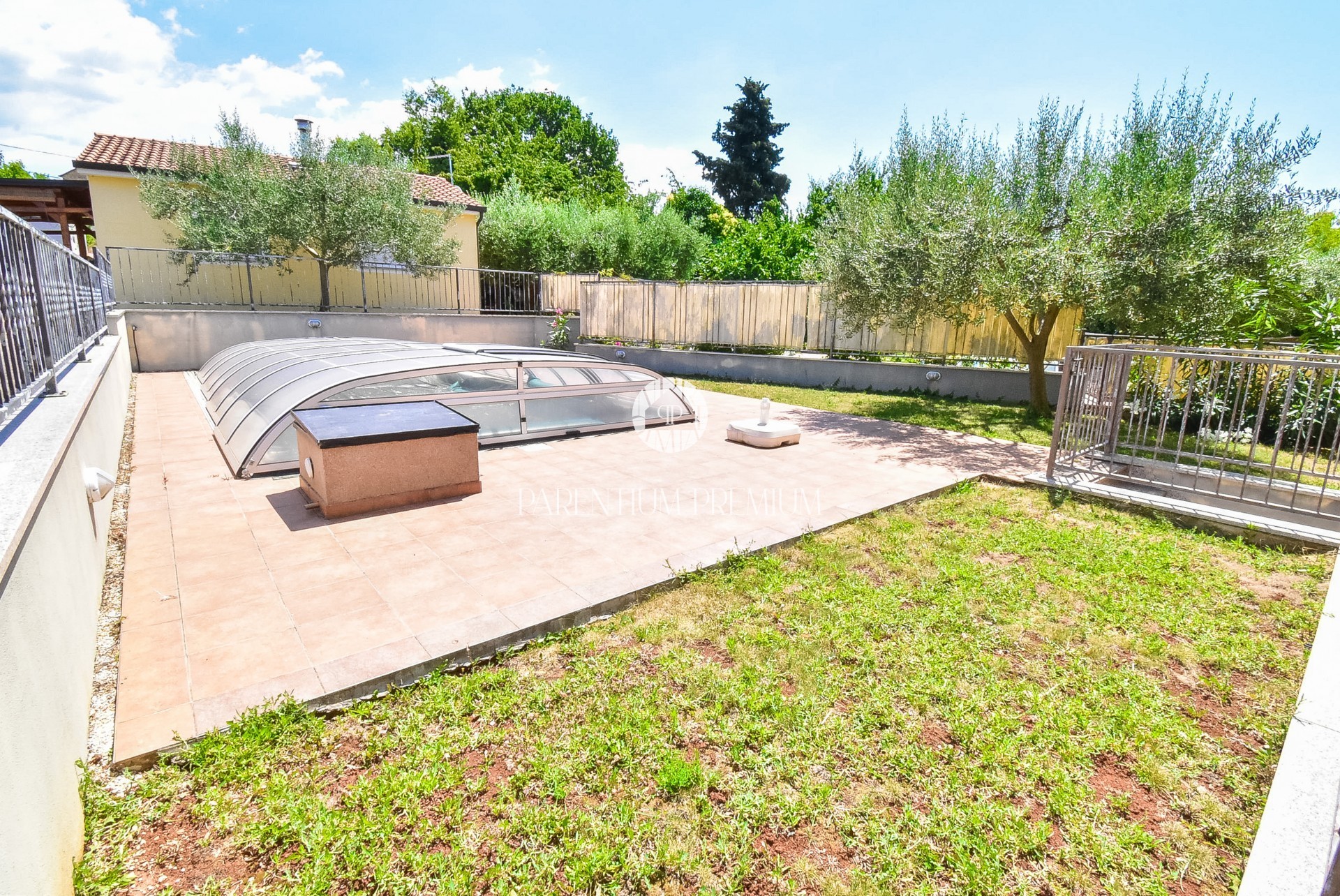 Bazen je također opremljen staklenom kupolom koja ga štiti izvan sezone, olakšava održavanje i čuva kvalitetu vode.