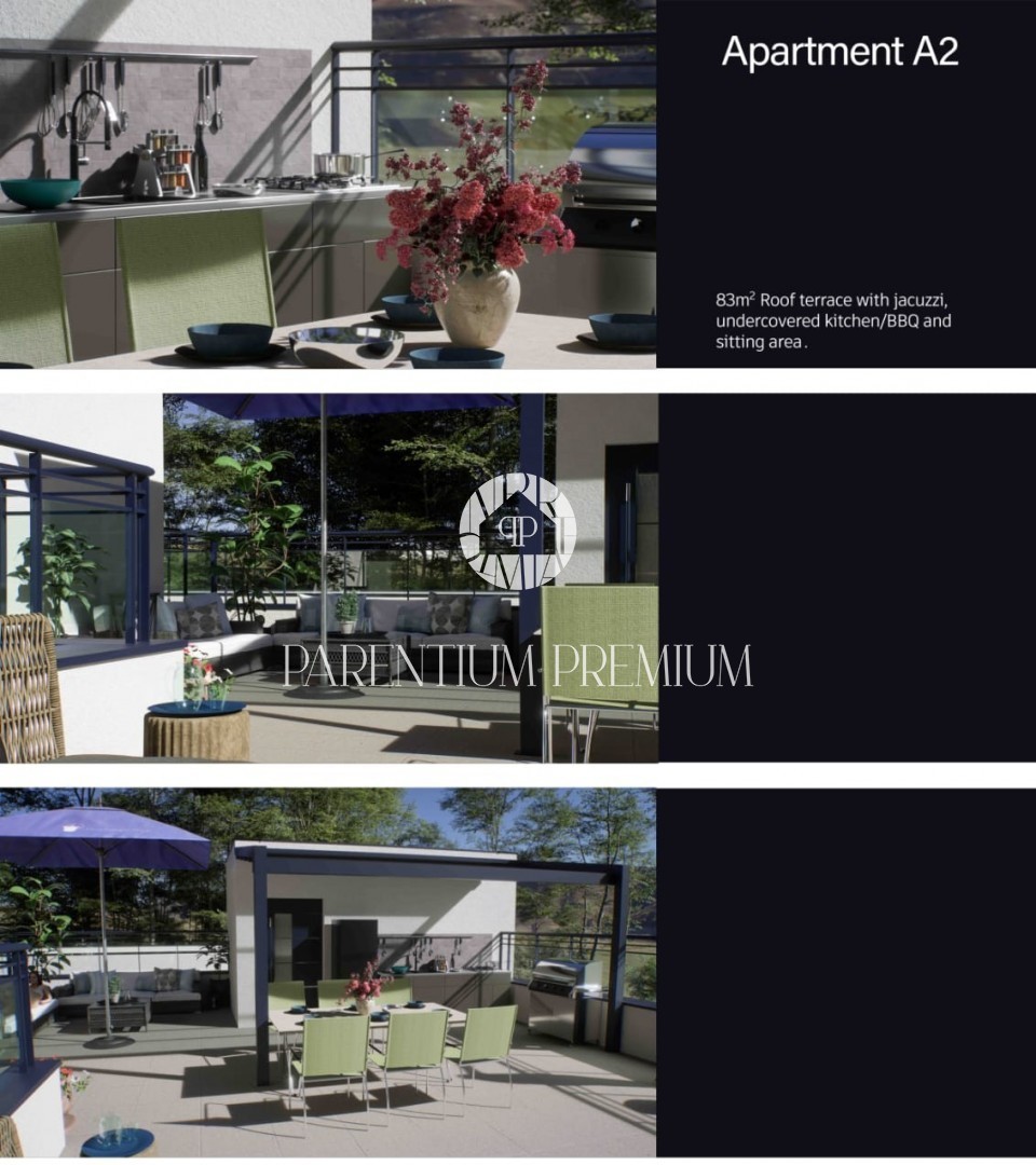 Posebna prednost ove nekretnine je prostrana krovna terasa površine 82,55 m² s panoramskim pogledom na more, idealna za uređenje ljetne kuhinje, sunčališta, lounge zone ili jacuzzija.