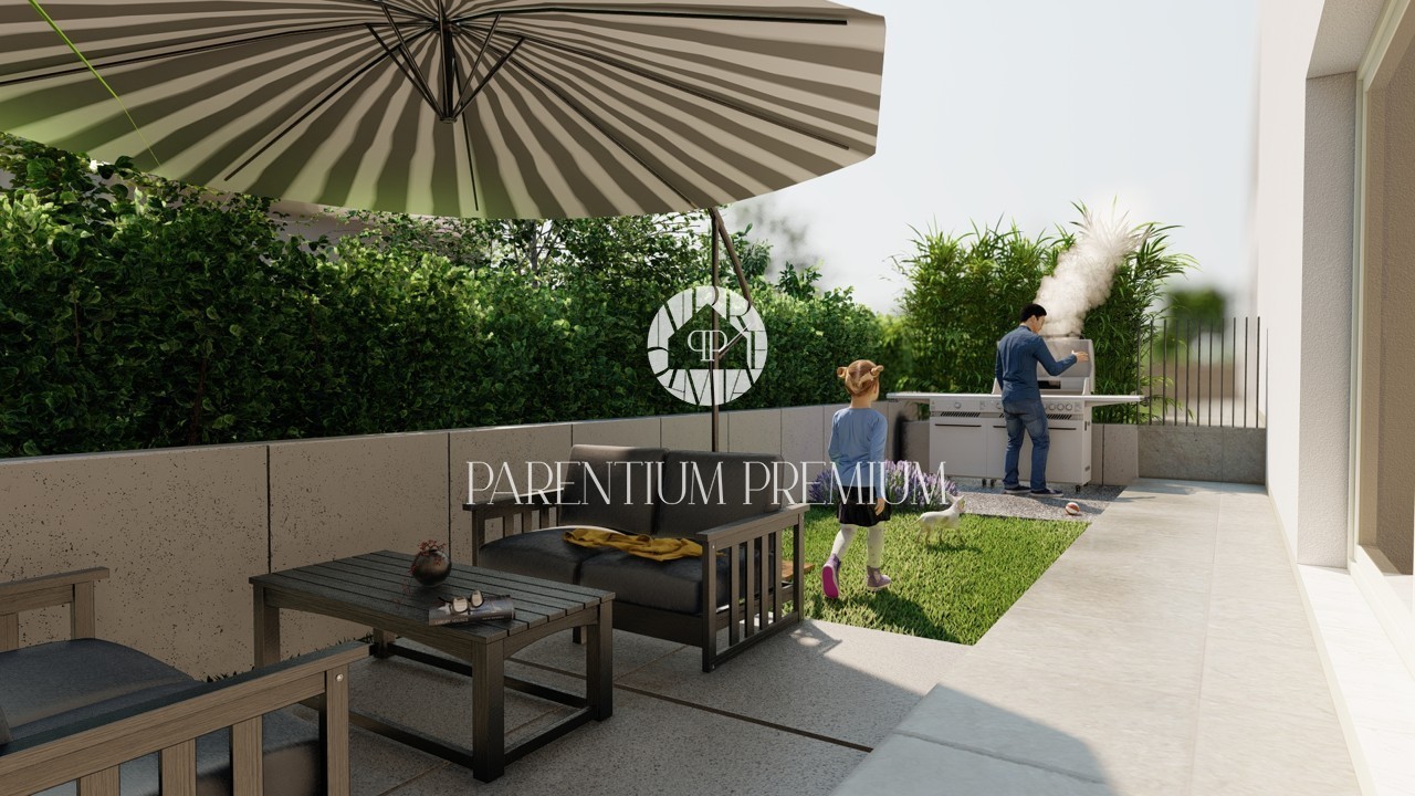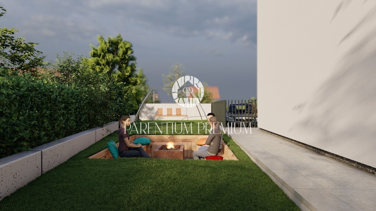 Okućnica površine 183,60 m² u potpunosti je ograđena te pruža privatnost i dovoljno prostora za uređenje prema vlastitim željama. Unutar parcele osiguran je parking za dva vozila.