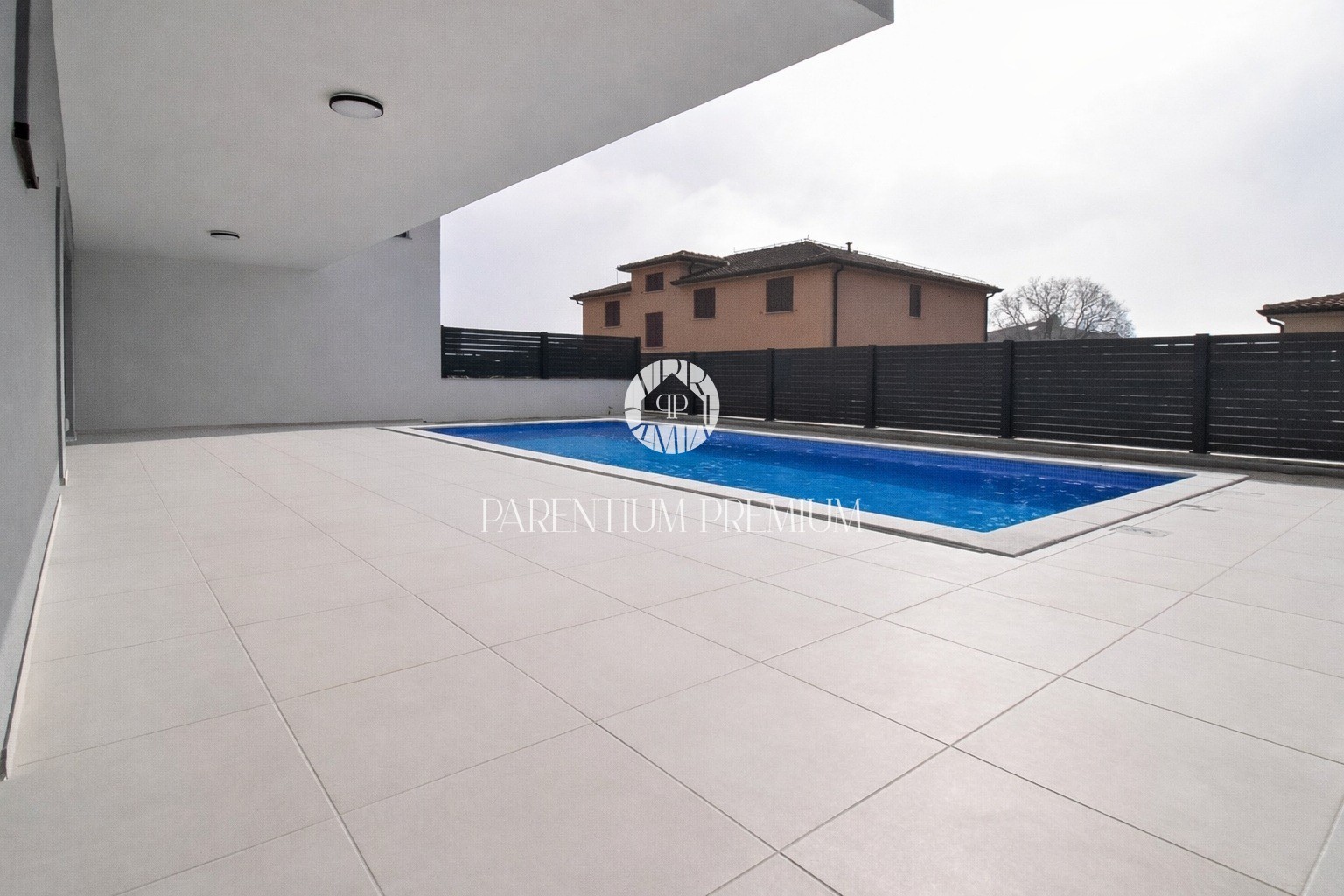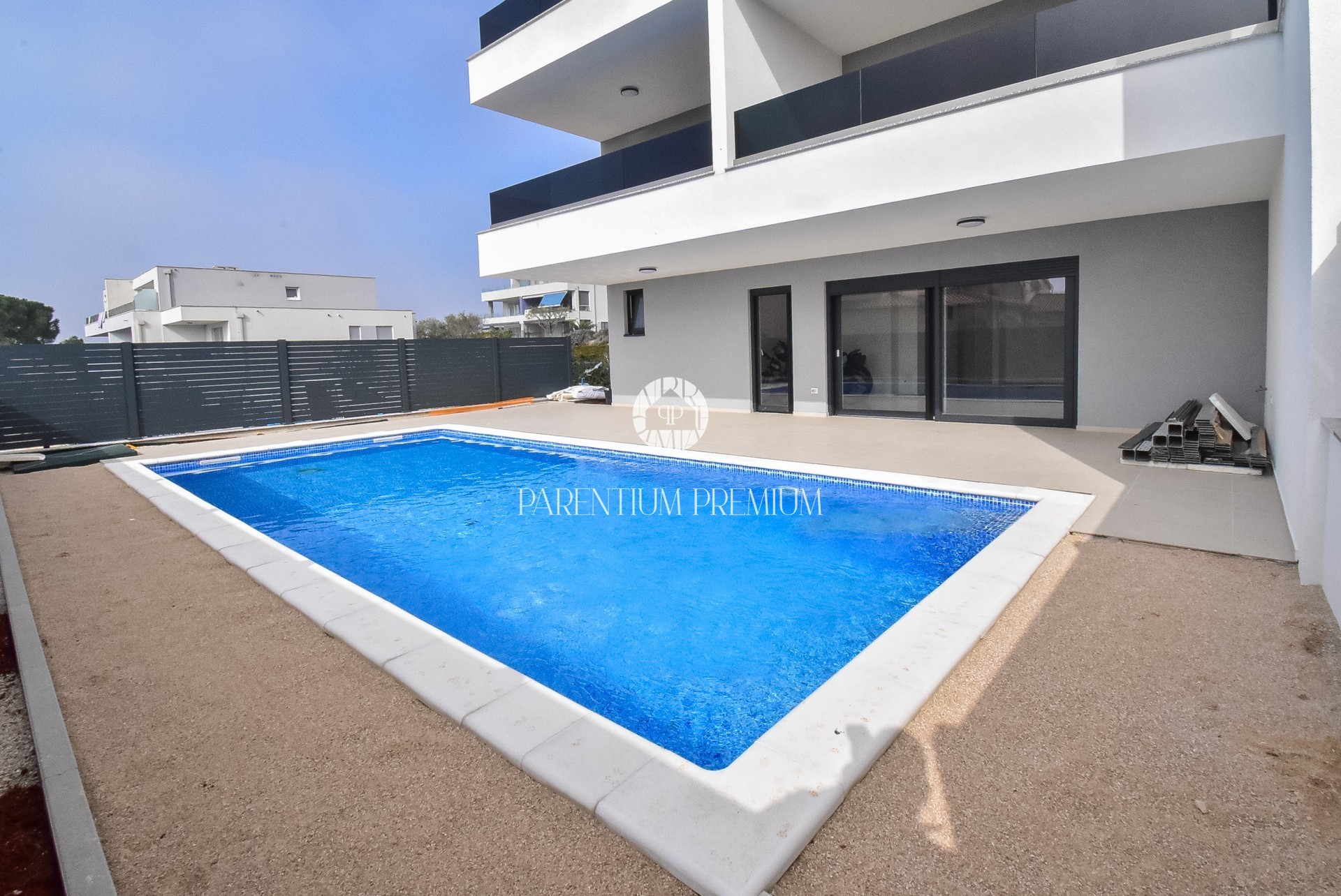 Na prodaju je luksuzan stan s bazenom, smješten u prizemlju moderne stambene zgrade s ukupno osam stanova, na izuzetno atraktivnoj lokaciji u Novigradu. Nekretnina se nalazi svega 700 m od prvih plaža i marine te oko 1000 m od centra grada i svih važnih sadržaja.