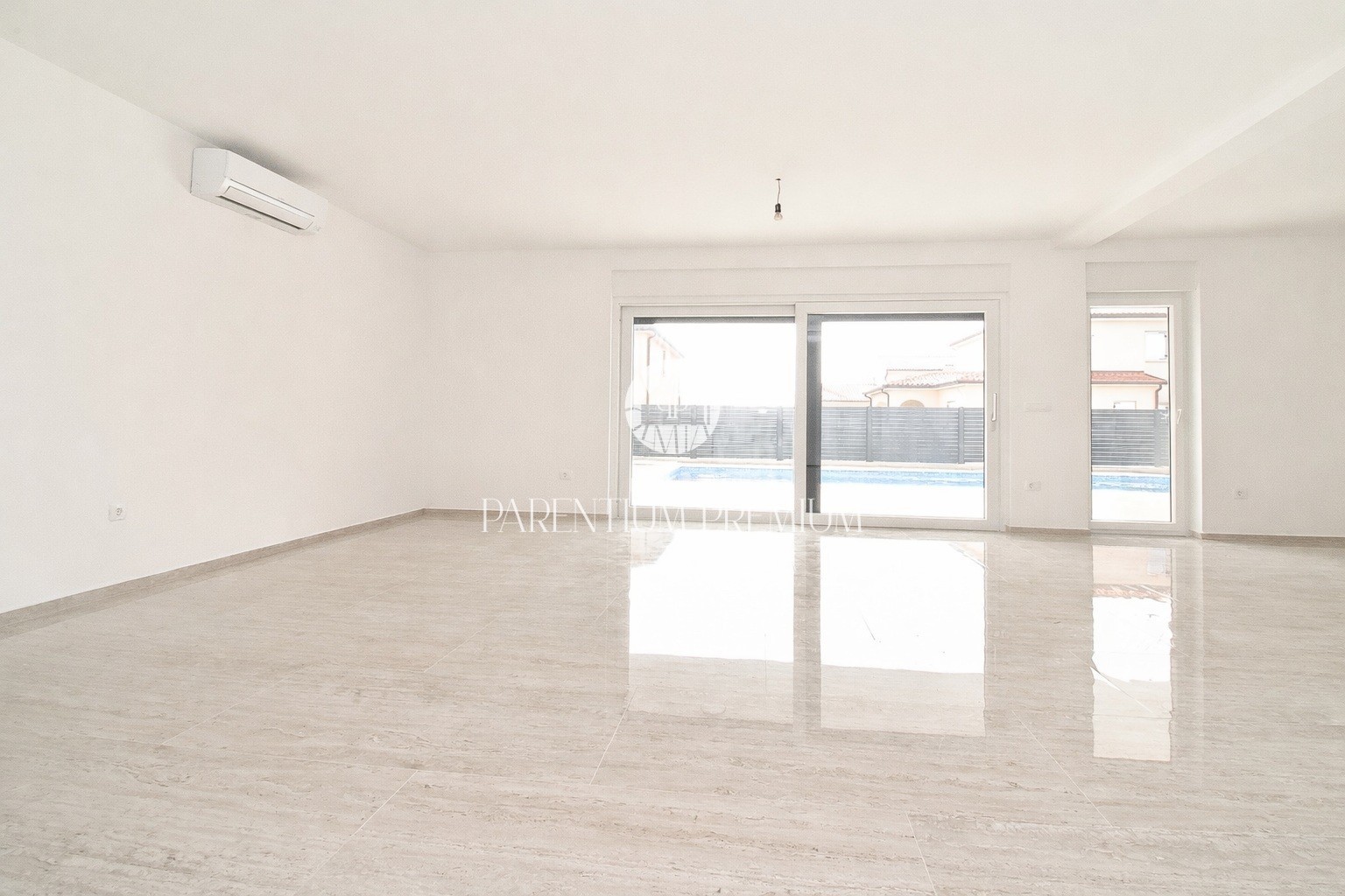 Stan je funkcionalnog i suvremenog rasporeda te se sastoji od tri spavaće sobe, od kojih jedna ima vlastitu kupaonicu, dodatne zajedničke kupaonice, te prostranog dnevnog prostora koji objedinjuje kuhinju, blagovaonicu i dnevni boravak po open space konceptu. Iz dnevnog dijela izlazi se na natkrivenu terasu i privatno dvorište s bazenom, idealno za opuštanje i uživanje tijekom toplijih mjeseci.