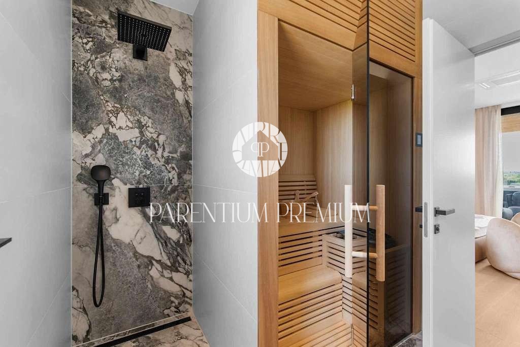 Penthouse s pogledom na more, jacuzzijem, saunom i liftom – 600 m od mora