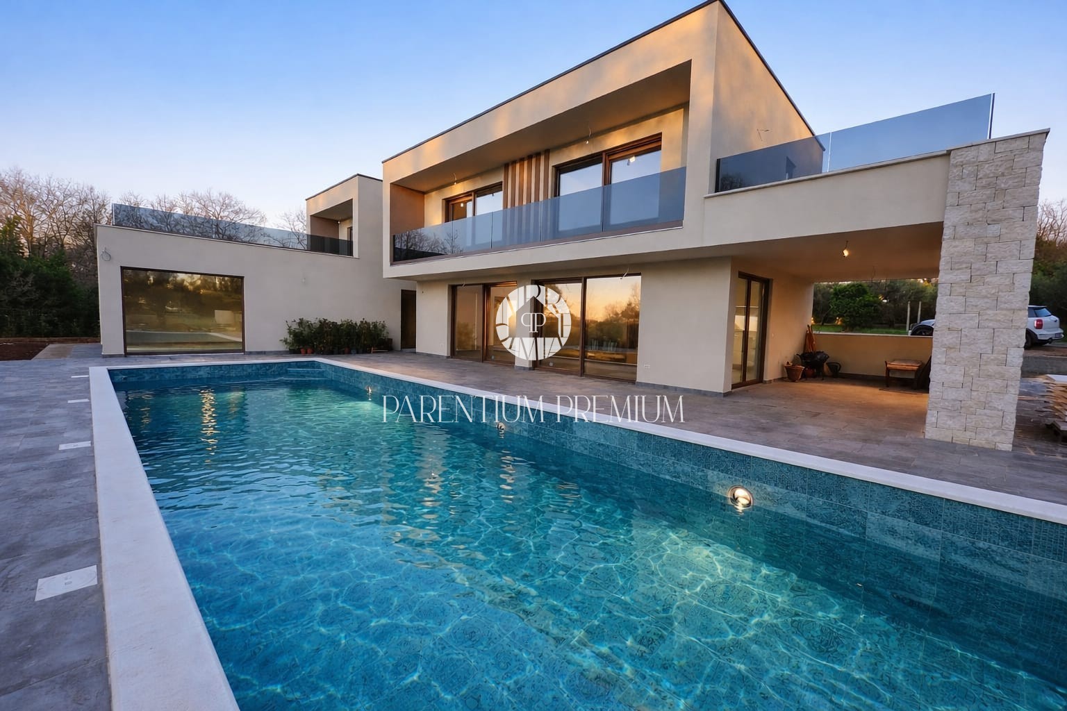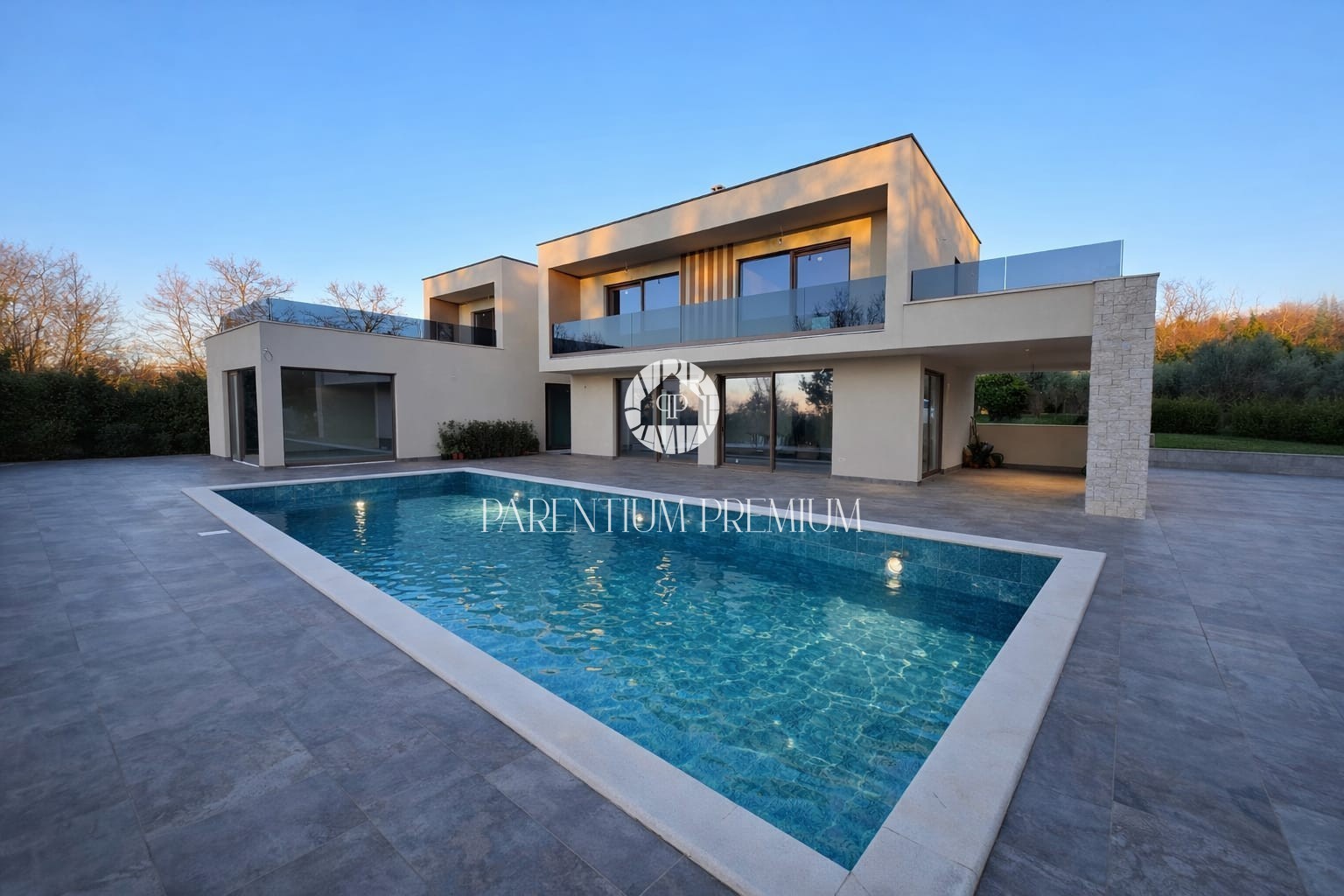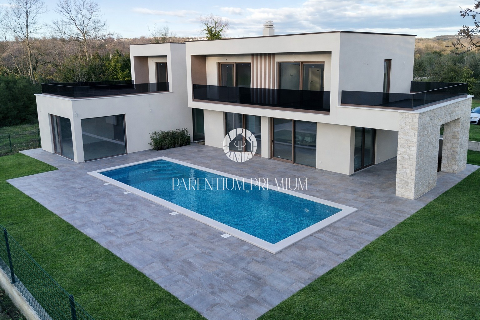 U mirnom okruženju, svega desetak minuta vožnje od Poreča i obale, gradi se ova luksuzna moderna vila koja spaja vrhunski dizajn, komfor i pogled na prirodu.
