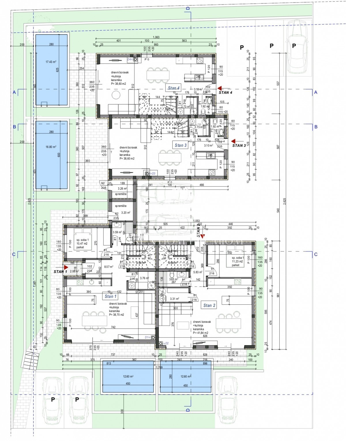 Ispred kuće će se nalaziti dva parkirna mjesta.