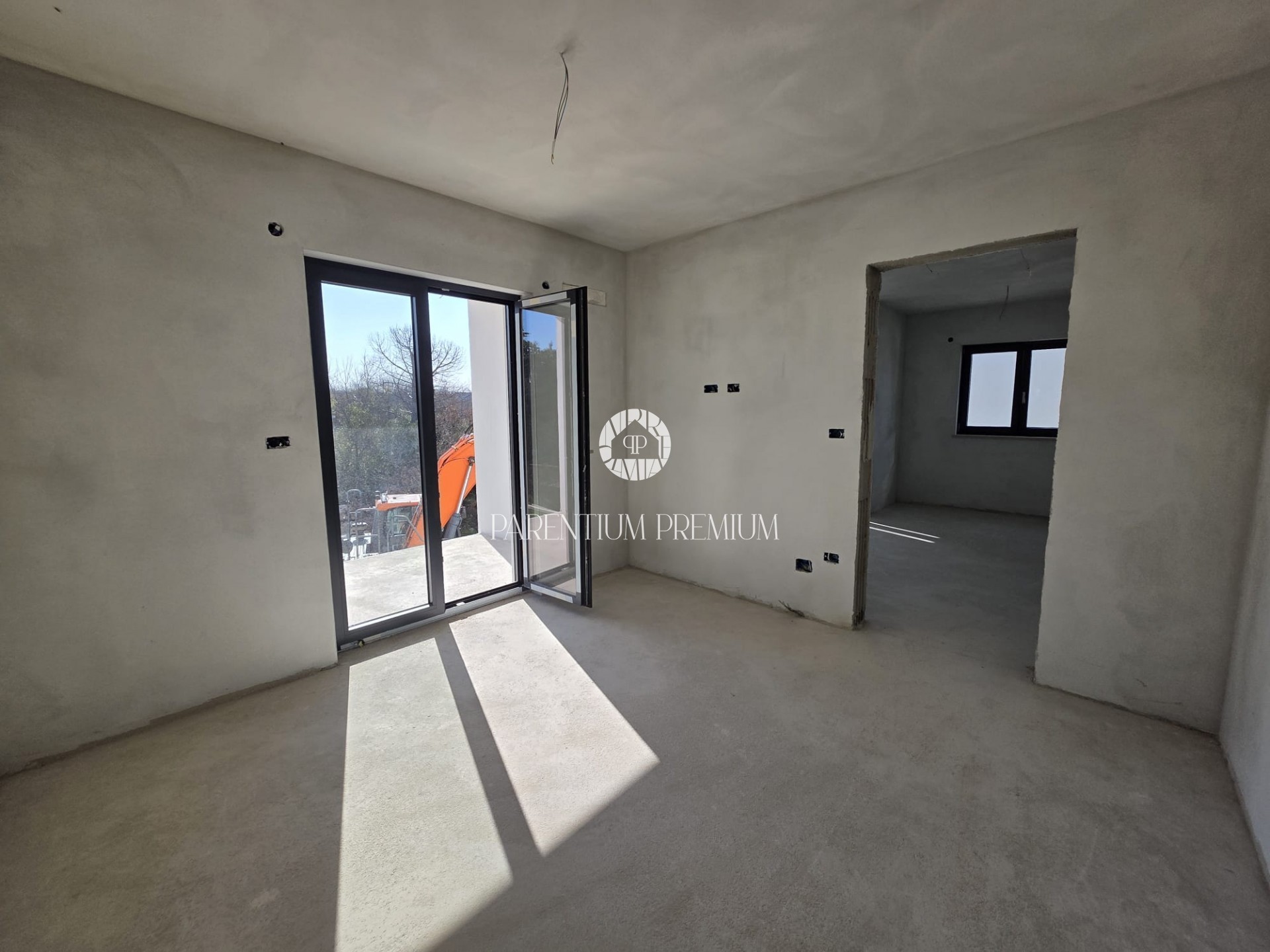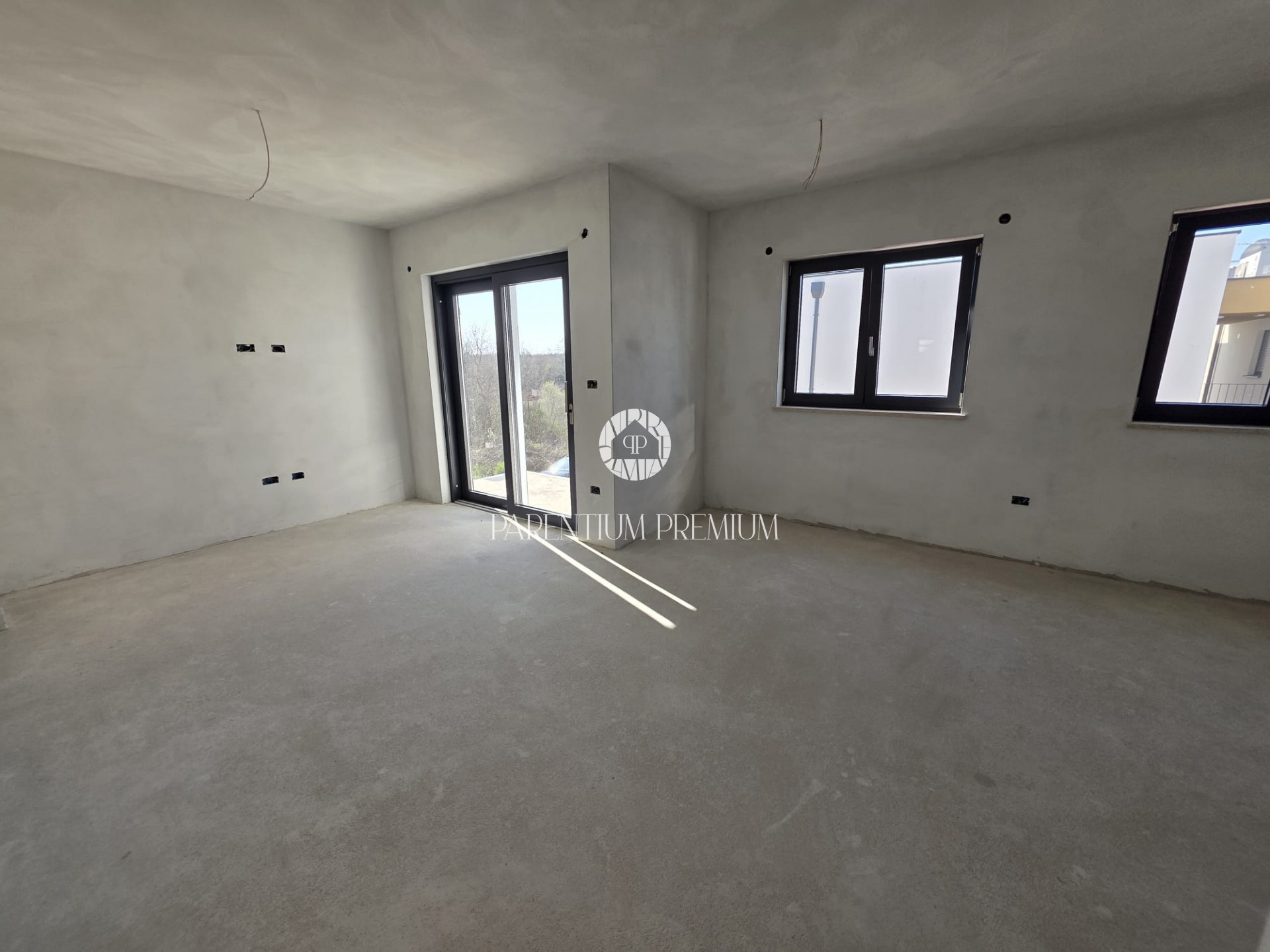 Poreč stan novogradnja 2S+DB, 1.5 km od mora, terasa, parking, podno grijanje