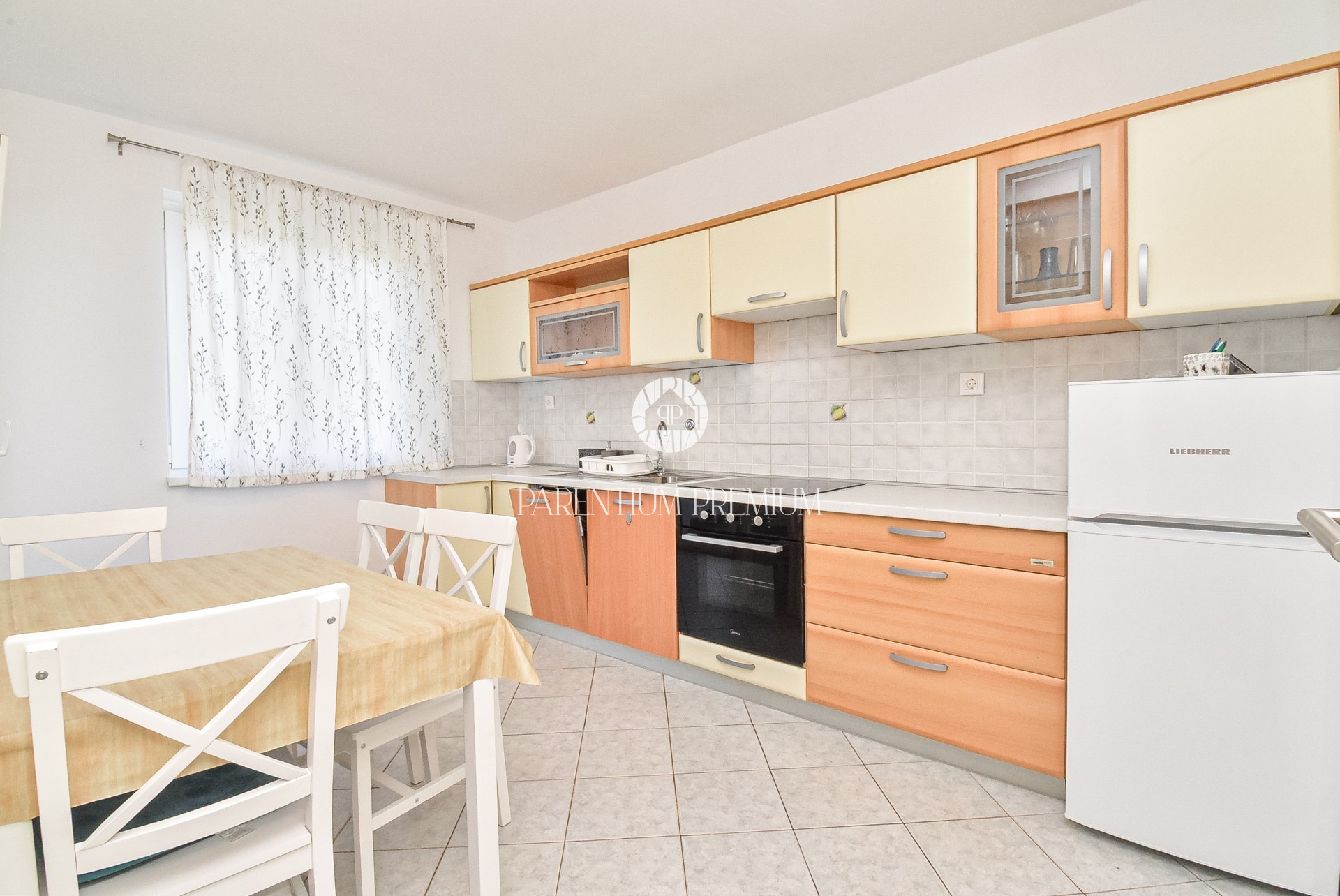 Stan se odlikuje odličnim rasporedom te se sastoji od ulaznog predprostora s garderobom, jedne kupaonice, dvije prostrane spavaće sobe, zasebnog dnevnog boravka s izlazom na natkrivenu terasu, te kuhinje s blagovaonicom koja također ima izlaz na natkrivenu terasu s koje se pruža lijep pogled na more.