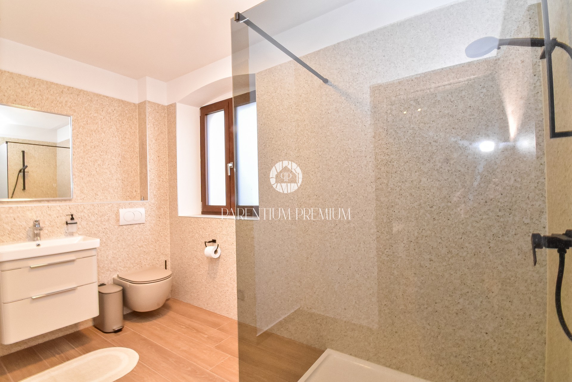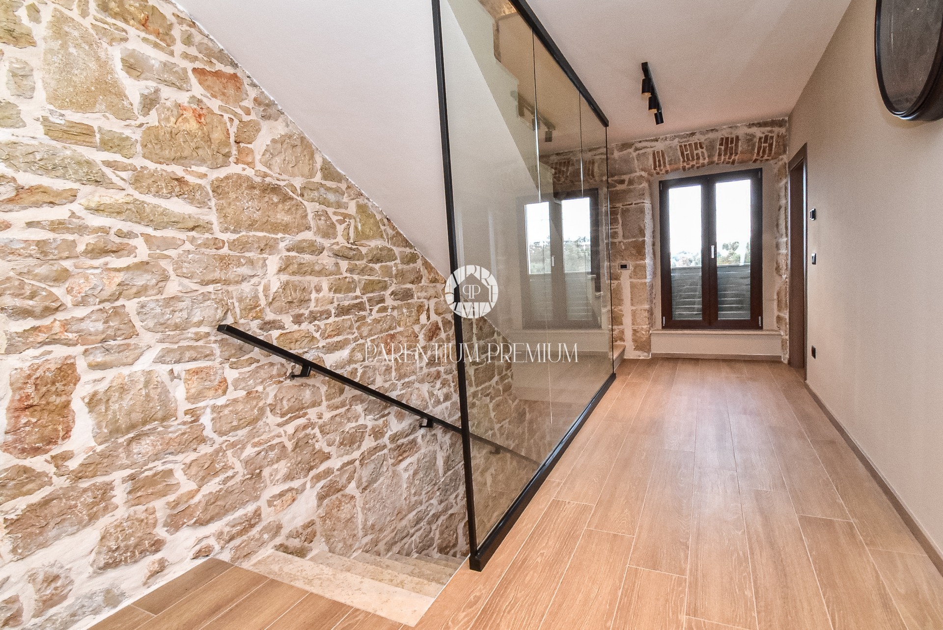 Unutarnje stubište, ukrašeno autentičnim istarskim kamenom i staklenim stijenama, vodi na prvi kat gdje se nalazi spavaća soba i kupaonica, dok se na drugom katu smjestila još jedna prostrana spavaća soba s vlastitom kupaonicom.