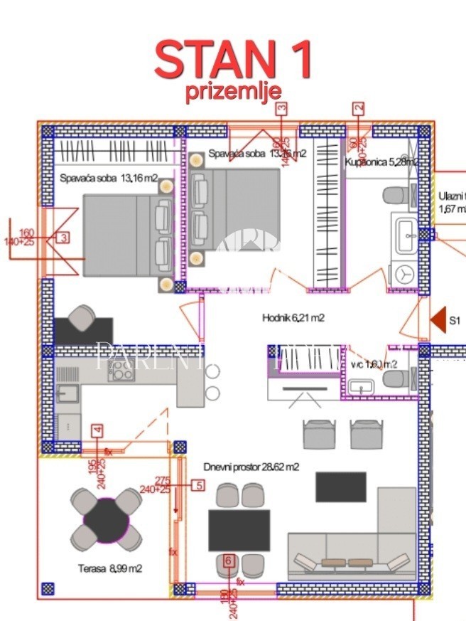 In vendita un appartamento al piano terra situato in un edificio residenziale più piccolo con un totale di 5 unità, in una posizione molto ricercata vicino a Parenzo.