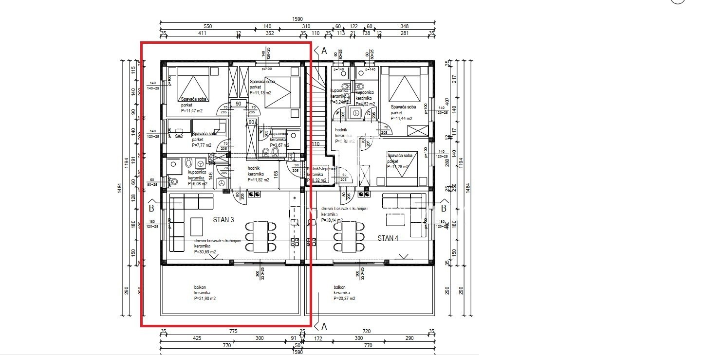 Appartamento moderno con due camere da letto e ampia terrazza - nella fase di costruzione