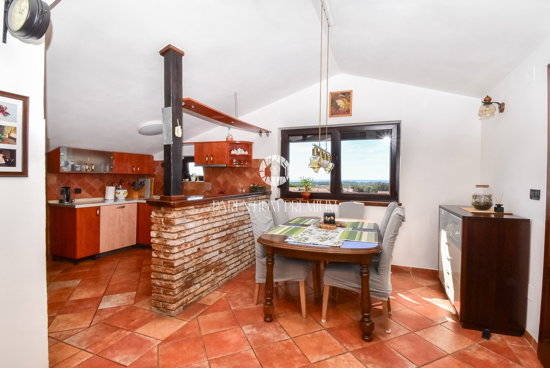 A soli 3,5 km dal mare e 4 km dal centro di Parenzo è in vendita un ampio appartamento con splendida vista panoramica sul mare e dintorni. Si trova al 3° piano di un edificio residenziale con sette unità abitative, che garantisce tranquillità e privacy.