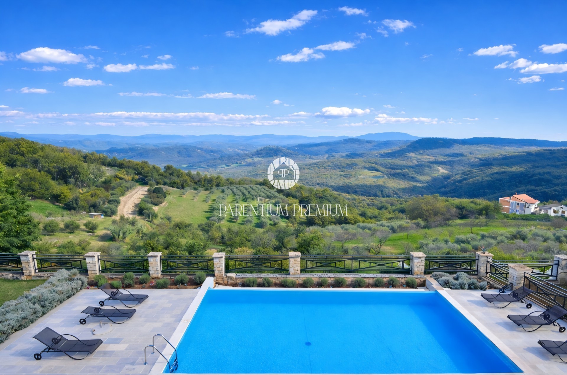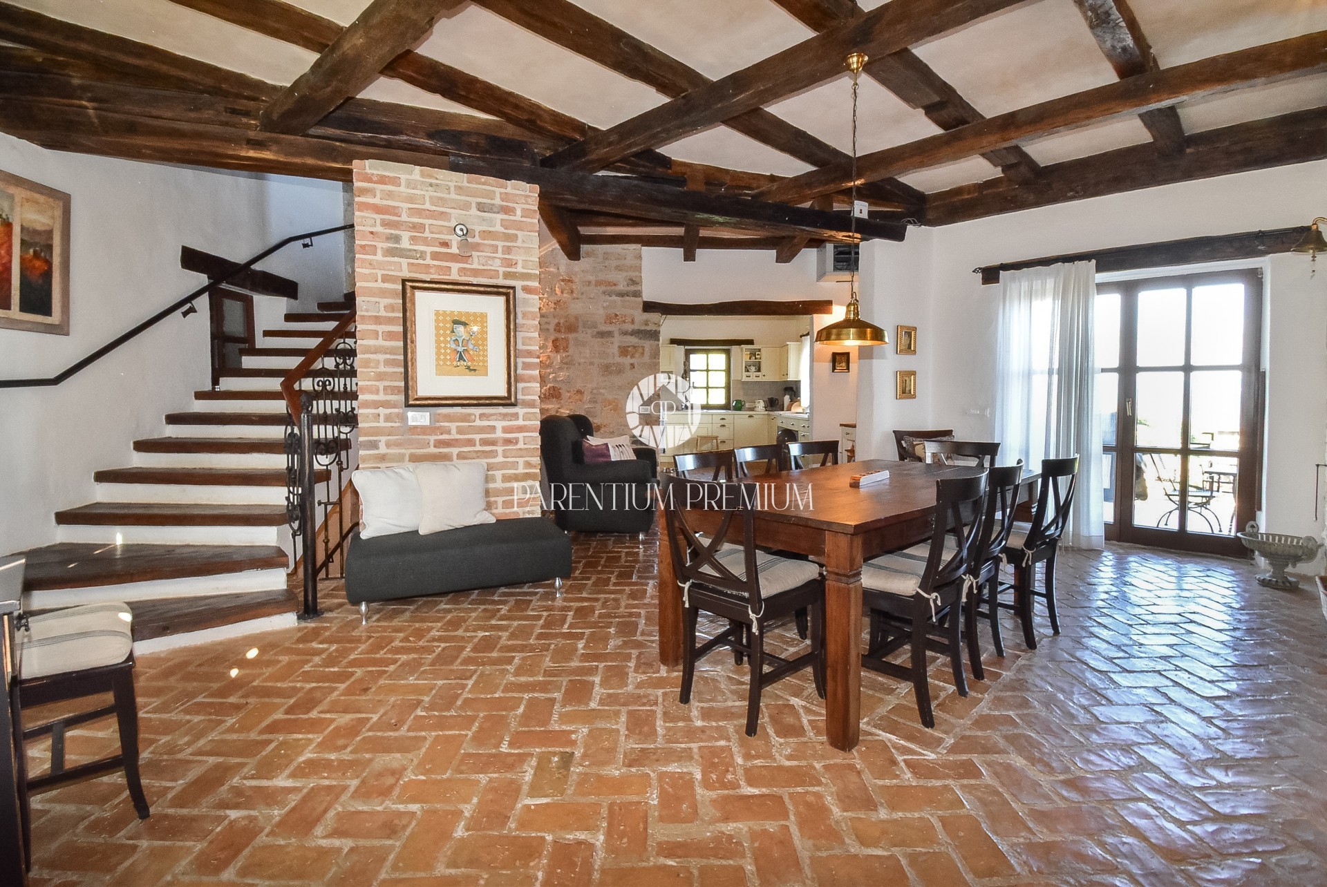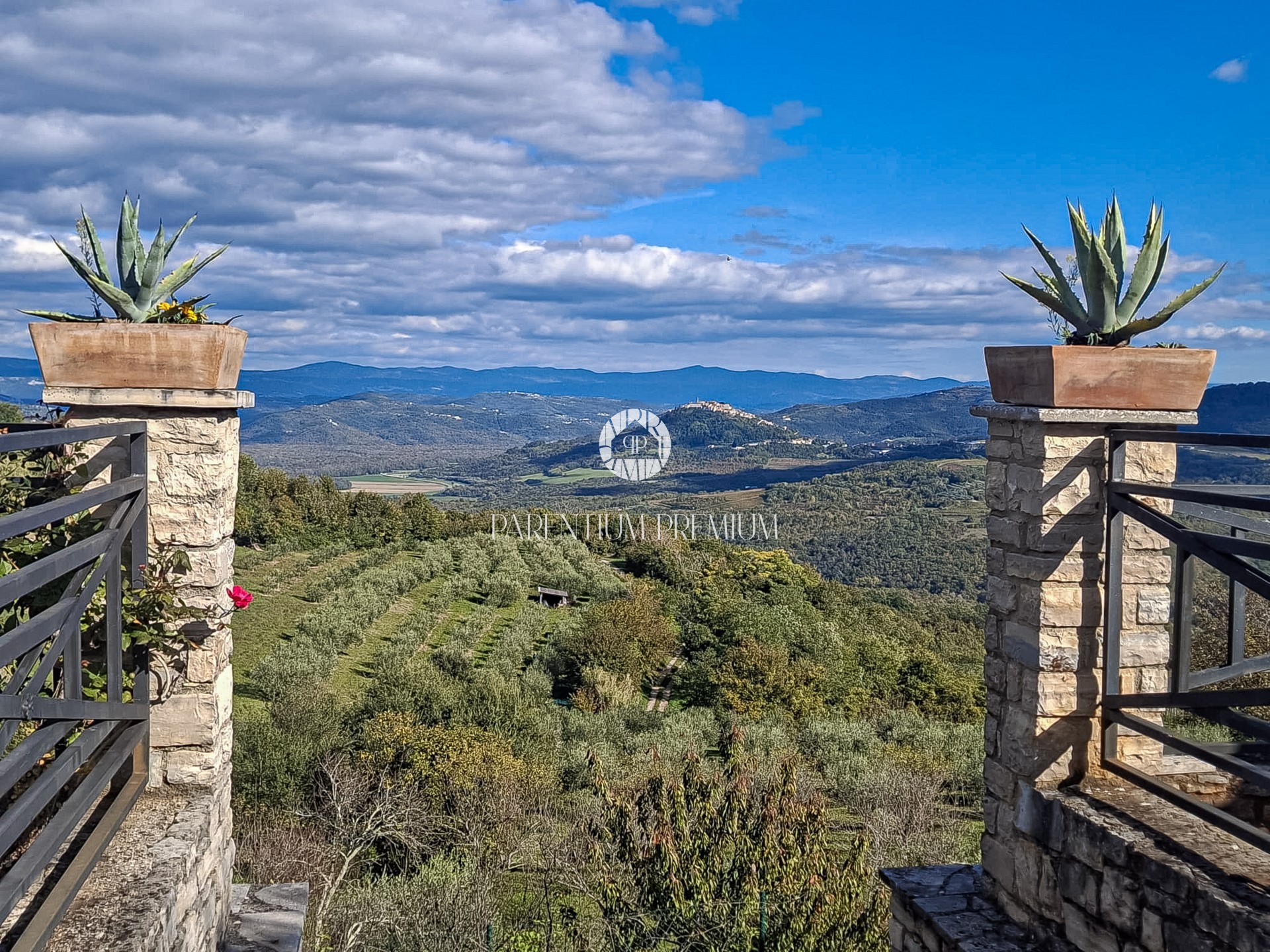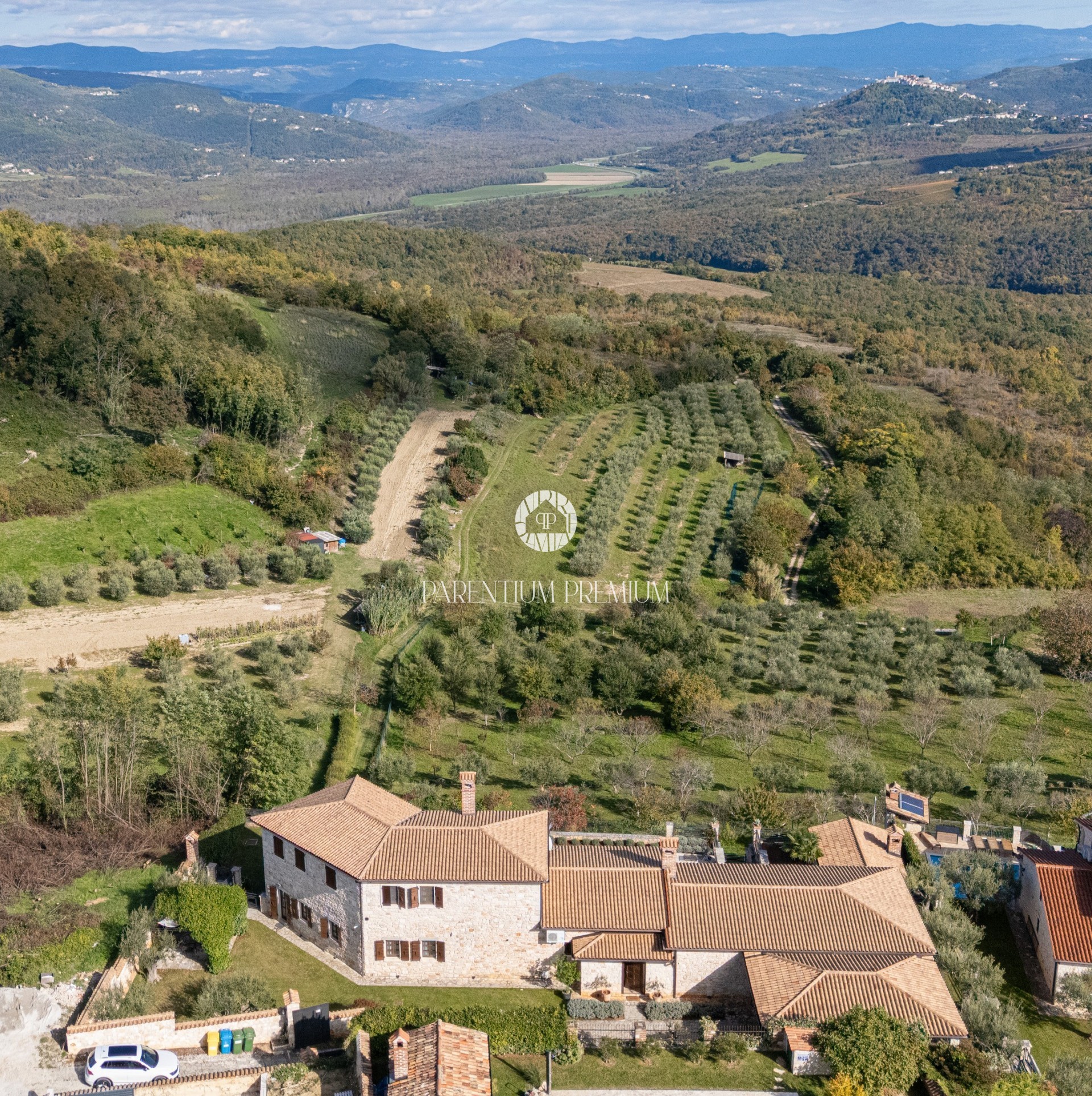 In una posizione tranquilla si trova questa autentica villa istriana, con una superficie abitabile di circa 500 m², situata su un terreno curato di 1.735 m², con vista panoramica aperta su vigneti, uliveti e Motovun.