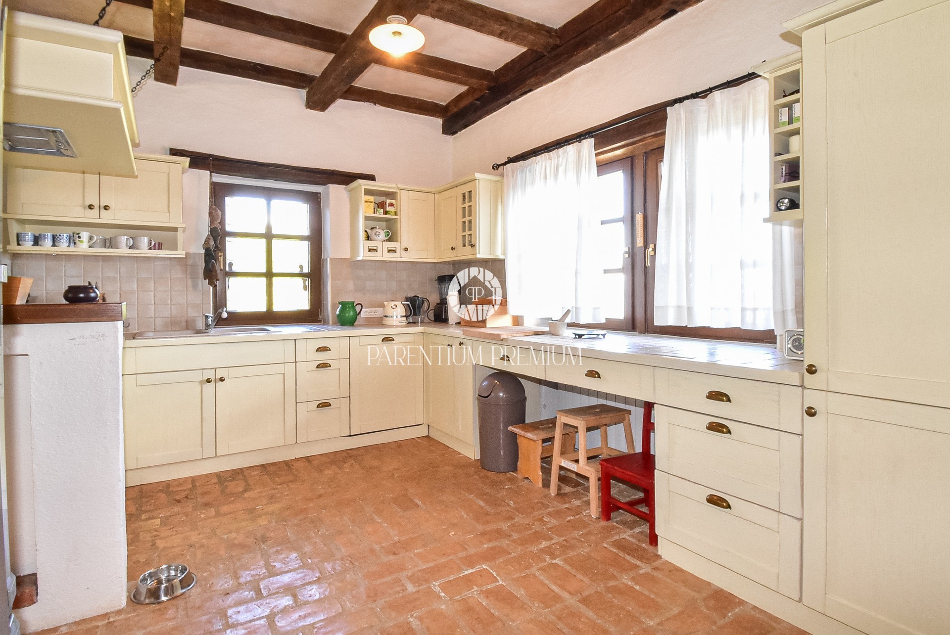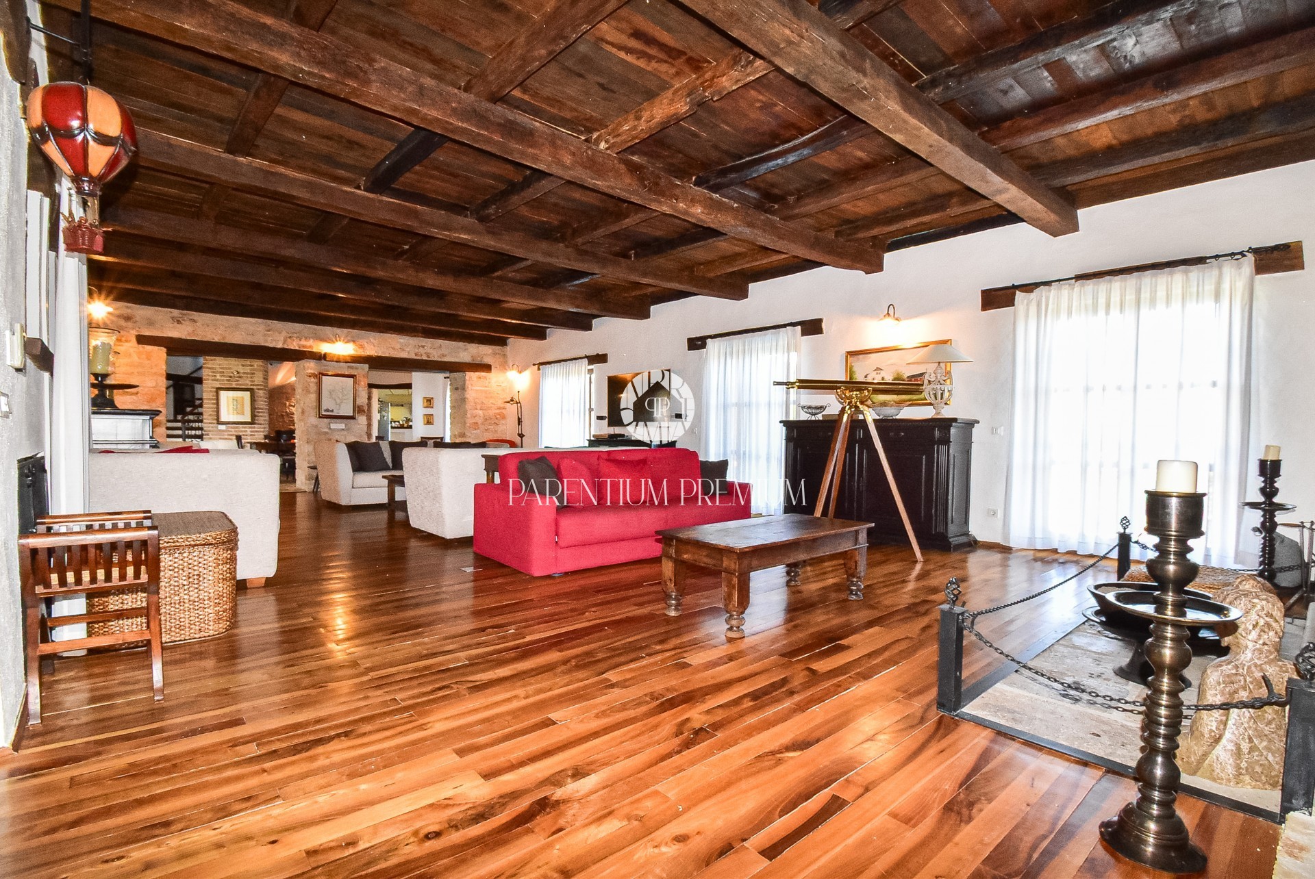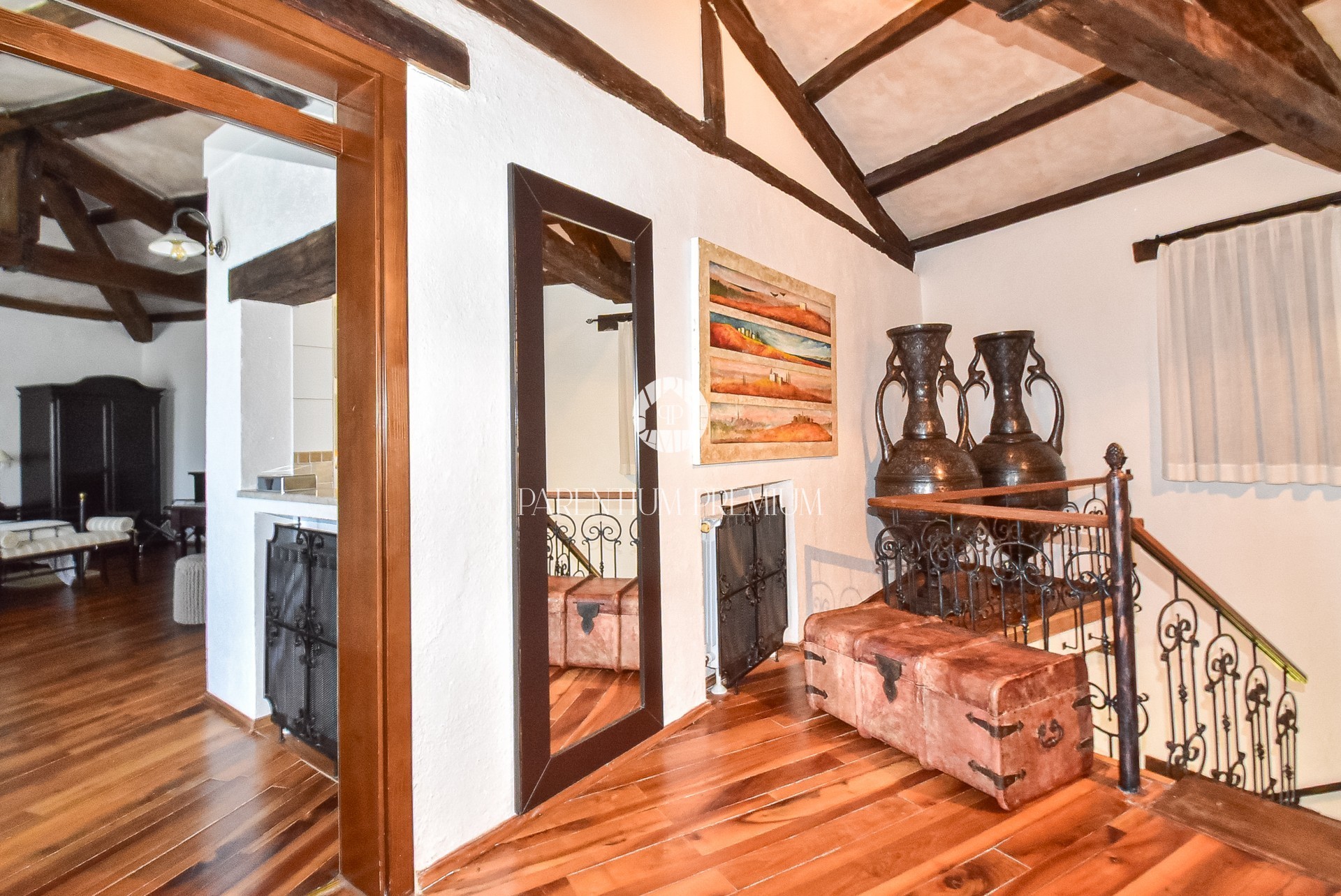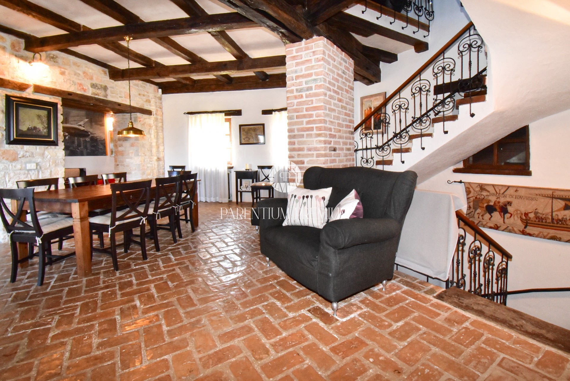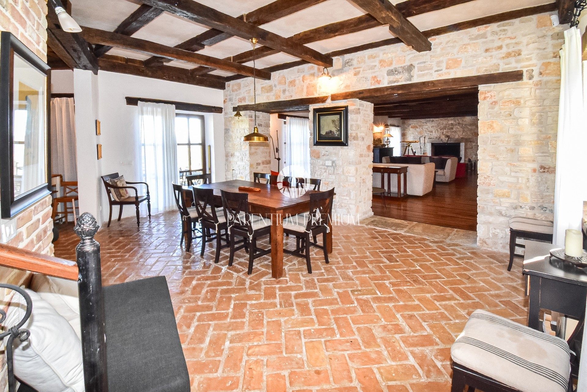 In una posizione tranquilla si trova questa autentica villa istriana, con una superficie abitabile di circa 500 m², situata su un terreno curato di 1.735 m², con vista panoramica aperta su vigneti, uliveti e Motovun.