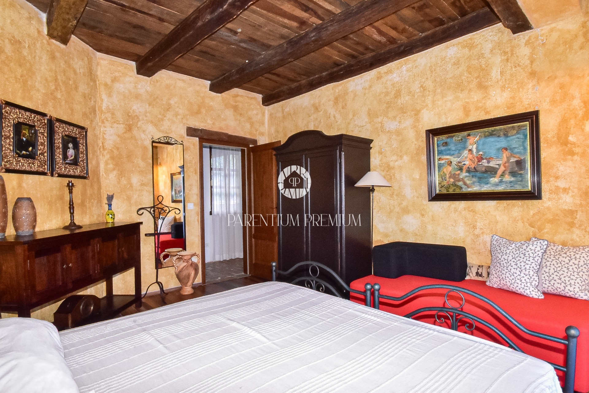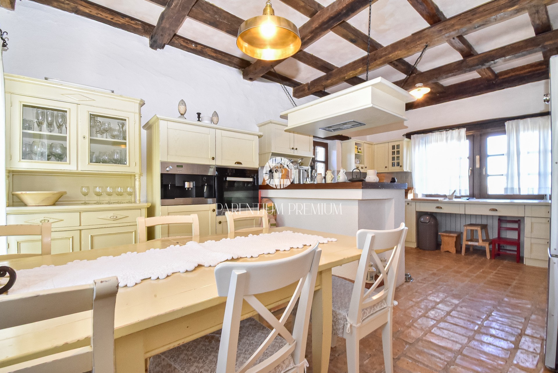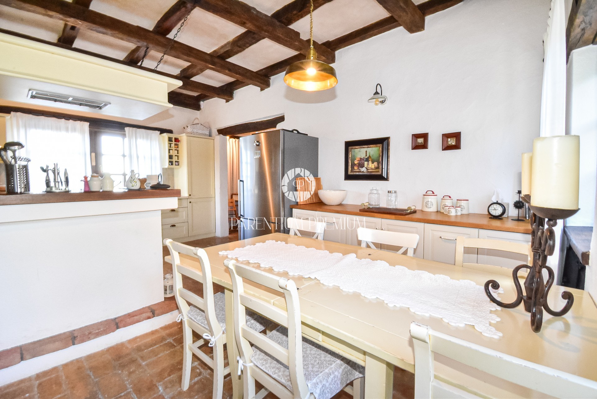 Il giardino curato offre una piscina, una cucina estiva e diverse aree dedicate al relax all’aperto. La proprietà è dotata di riscaldamento centralizzato, camini e aria condizionata e dispone di tre posti auto coperti.