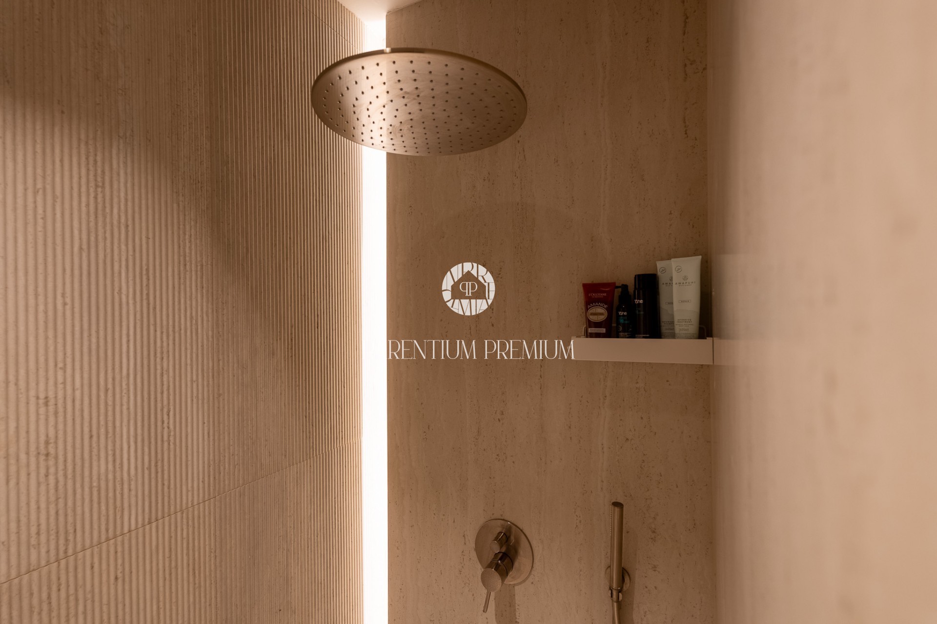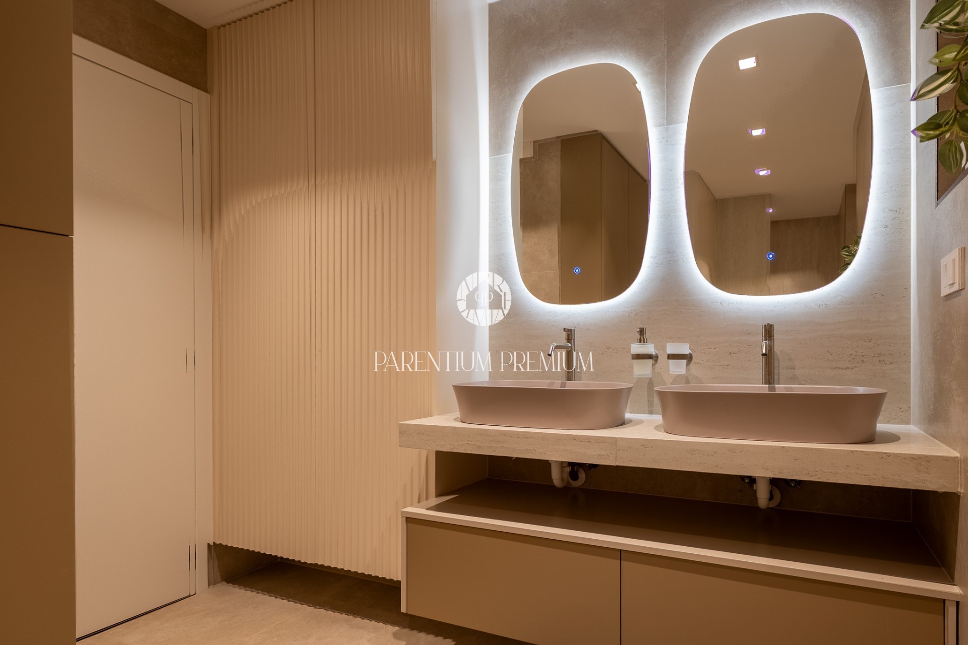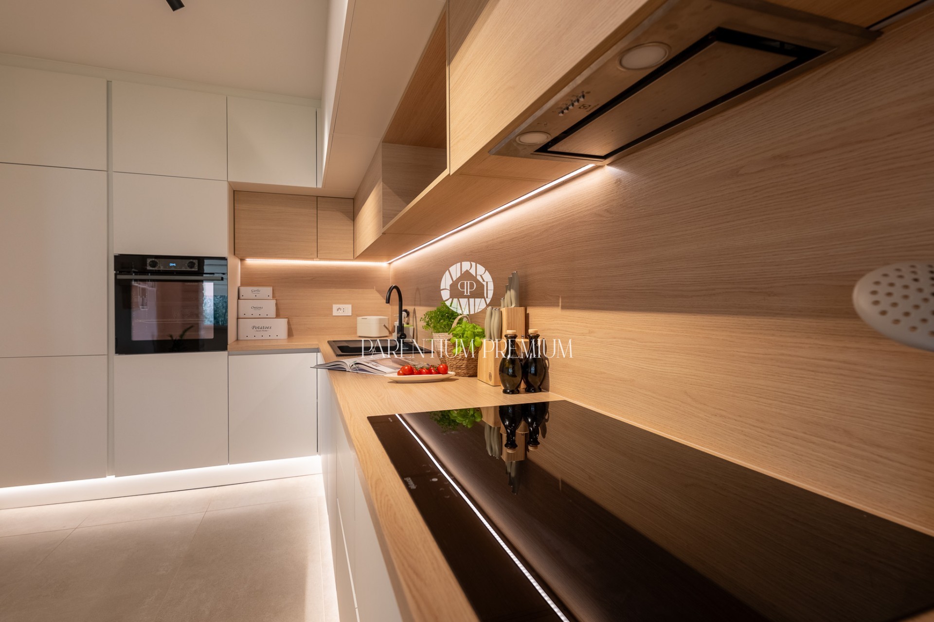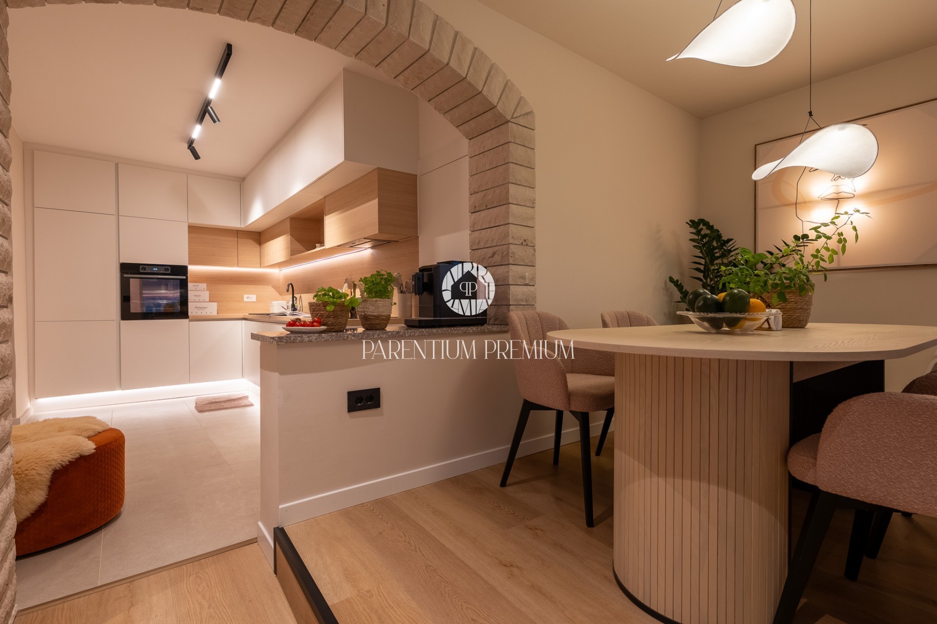 È dotato di riscaldamento a pavimento elettrico, nuovi climatizzatori Samsung Wind-Free, cucina moderna con elettrodomestici inclusi, bagno di design con sanitari Ideal Standard, pavimenti in vinile CLAP! 3D di alta qualità, piastrelle pregiate e locali di deposito.
