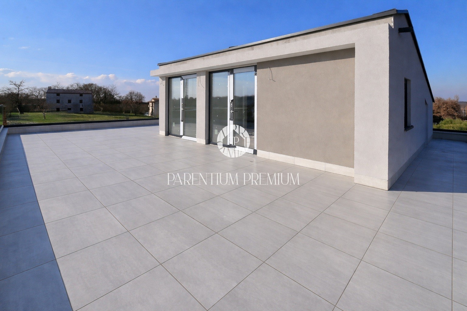 Na prodaj je moderna vila na mirni lokaciji, le 3 km od središča Poreča, s skupno bruto površino 325 m² in neto bivalno površino 220 m², na zemljišču velikosti 501 m².